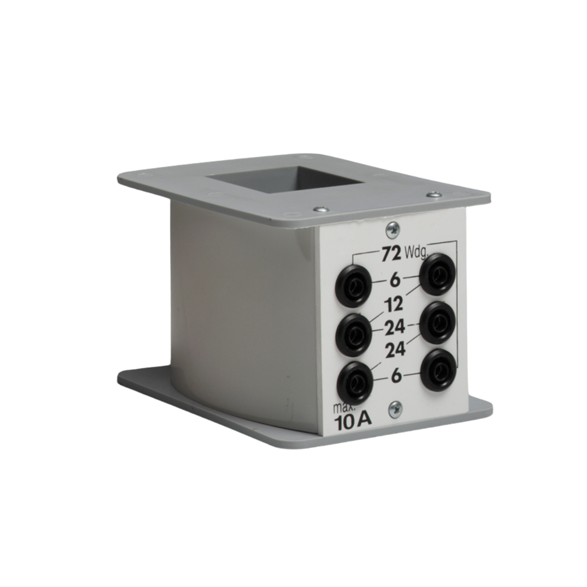 Spole för demonstrationstransformator, passar U-I kärna 459700. Spolen är tillverkad av plast med en fyrkantig öppning. Frontplåten anger anslutningsalternativ, lindningsnummer, ohmskt motstånd och max. strömstyrka. Genomföringar av säkerhetstyp för säkerhetstrådar. Spolen är försedd med extra isolering i enlighet med gällande föreskrifter.